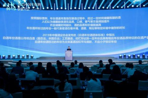 中国酒业协会理事长宋书玉在开幕致辞中深入阐释了“真年份”的深层内涵。他强调,真年份是白酒产业与消费者建立信任不可回避的话题,年份酒不仅是产品品质的体现,更是行业诚信体系的基础。宋书玉从文化传承、时光雕琢、真实标准、情感记忆与价值载体五个维度展开分析,指出“酒是陈的香”不仅是一句俗语,更是基于时间价值的承诺。他呼吁全行业以透明和真诚酿造信任,用标准和规则守护品质,让“真年份”成为连接过去与现在的桥梁。